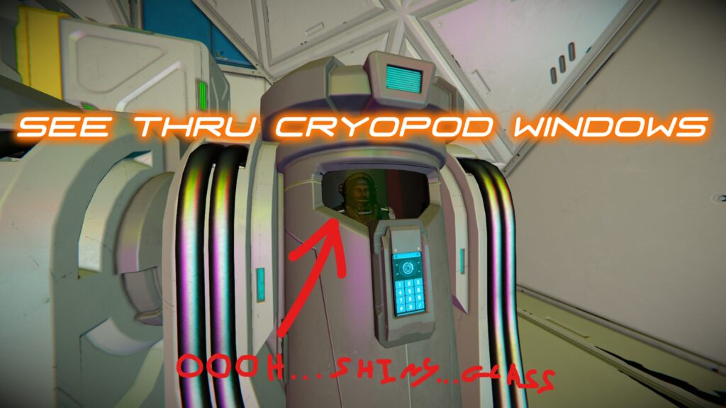 I was sitting here wondering why all the other cryopods in the game have glass where you can see through them, but yet the base game, OG version doesn’t. This mod makes it so you can see thru the vanilla OG cryopod’s window. Only changes model, does not modify stats or functionality.